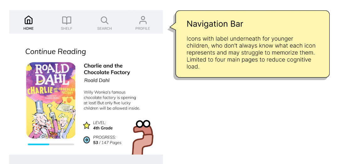 The reader was also one part of the app we could count on remaining relatively stable; it was central to the idea behind our client’s pitch and MVP, whereas the design of the educational tools for teaching literacy skills depended heavily on the results of our research, which had yet to take place at the time.