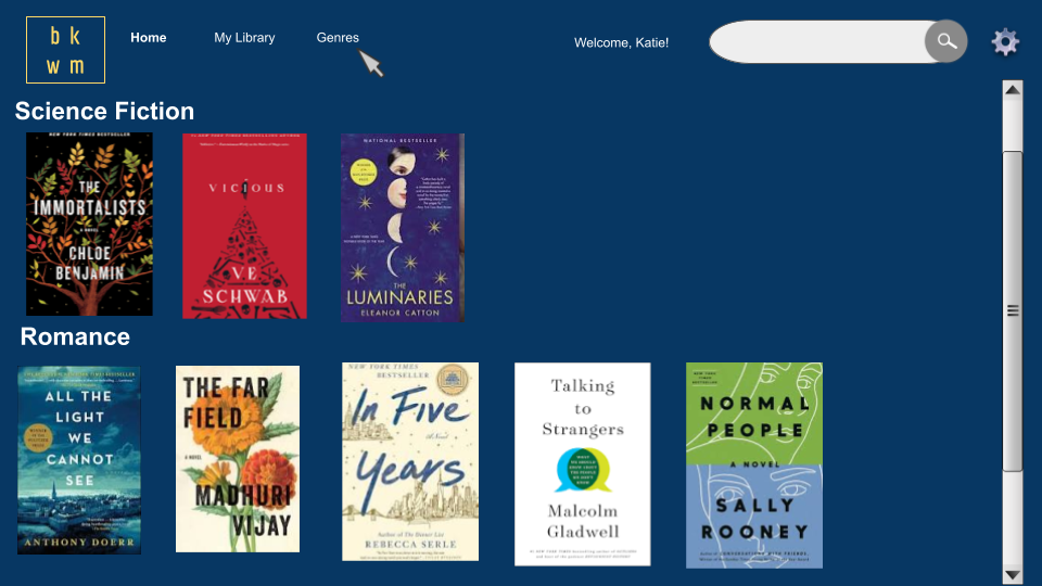 I designed the UI and branding for the MVP version of BK Worm we could reasonably expect to implement by our deadline, as well as some mockups illustrating how BK Worm could be expanded in the future.
